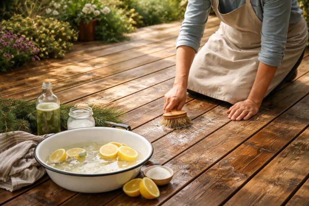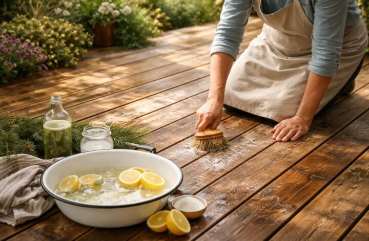 Les terrasses en bois apportent une touche chaleureuse et esthétique à nos espaces extérieurs, mais leur entretien est essentiel pour préserver leur beauté au fil des ans. Avez-vous déjà remarqué que certaines terrasses perdent leur éclat, deviennent grises ou se couvrent de mousse ? Ces désagréments ne sont pas irréversibles, et il existe des méthodes naturelles, testées et approuvées par nos grands-mères, pour leur redonner vie. Dans cet article, nous explorerons des astuces de grand-mère qui vous permettront de nettoyer votre terrasse en bois sans avoir recours à des produits chimiques agressifs, tout en respectant l’environnement. De l’utilisation du savon noir au bicarbonate de soude, découvrez comment ces ingrédients simples et naturels peuvent transformer votre espace extérieur.