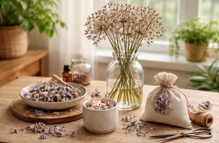 En ce qui concerne la décoration intérieure, les fleurs d’agapanthe peuvent également être intégrées dans des arrangements floraux. En utilisant des tiges fanées, il est possible de créer des projets de DIY floral uniques, véritables éléments de charme au sein de votre maison.